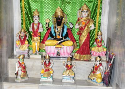 It has deities like Sheshashayi Vishnu-Lakshmi, Char Dham (Badri Narayan, Rameshwar, Dwarkadhish & Lord Jaggannath) Dvadash Jyotirling, Shrinathji, Shri Ram-Sita-Lakshman, Hanumanji, Amba-Gayatri-Saraswati-Khodiyar devi and so on.